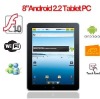 8 inch Android 2.2 tablet pcFlash 10.1 FEATURES1.8 inch TFT Touch-screen,Resolution: 800*600pixels2. Built-in Li Polymer(3200mAH)3. CPU :Freescale IMX515 800MHz4. O/S : Android 2.2 froyo5. Strong OpenGL 3D display function6. Support WIFI7. WEB / Office Function8. Support G-sensor9. eBook Function10. Ultra thin designSPECIFICATIONS1. CPU :Freescale IMX515 800MHz ( cortex A8, same core as the Motolora Droid X, HTC G5 ,etc.)2. NAND Flash: 4GB3. RAM:DDRII 512MB4. OPERATION SYSTEM: ANDROID 2.2 Froyo5. Support TF card up to 32GB6. Display Size: 8” TFT4:3 display with high resolution 800*600pixels7. G-SENSOR: yes8. WIFI:802.11b/g9. Built-in 1.3M camera10. File Format Support : AVI , WMV , RM , RMVB , MKV , 3GP , MP4 , ASF , VOB , PG , TS , TP ,DIVX , MOV ; UP TO 1902*1080 FULL HD11. Music: MP3/WMA/APE/FLAC/AAC/ WAV/OGG12. ON-line Chat: MSN/QQ/SKYPE/GTALK/LUMAQQ/ICQ13. E-book: PDF/TXT/CHM/DOC/EXCEL/ePUB/RTF14. Photo Album function: Supporting JPEG/BMP/GIF/PNG Format15. Rechargeable Battery :3200 mAH, long-time standby and4-5 hours working time